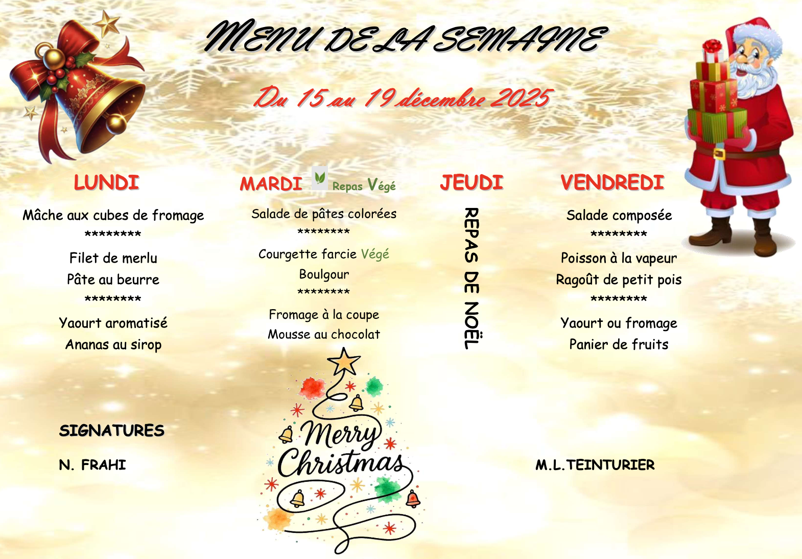 Menu du 15 décembre 2025 au 19 décembre 2025.