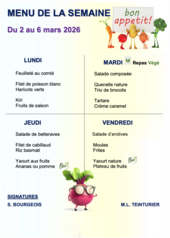 Menu du 02 mars au 06 mars 2026.