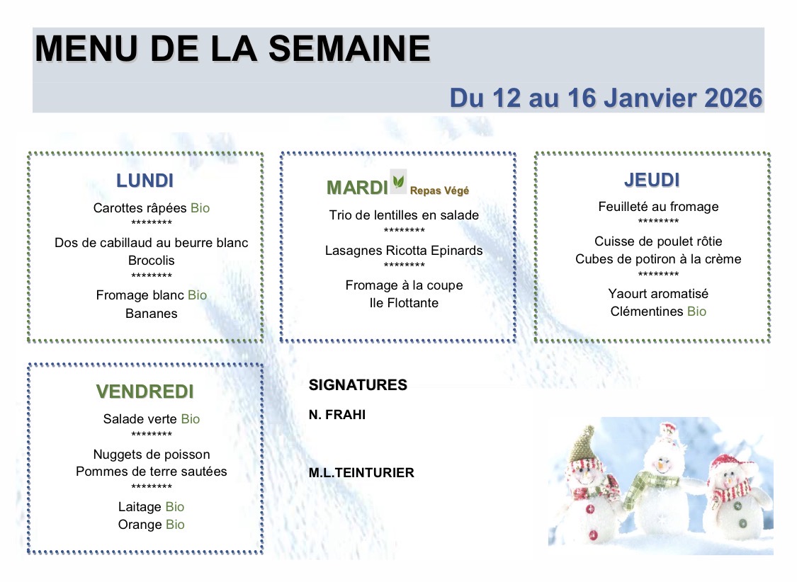 Menu du 12 janvier 2026 au 16 janvier 2026.