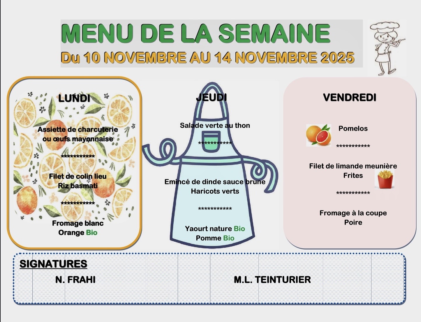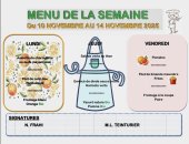 Menu du 10 novembre 2025 au 14 novembre 2025.